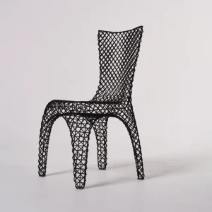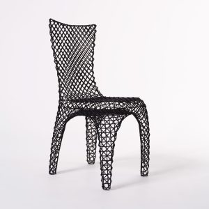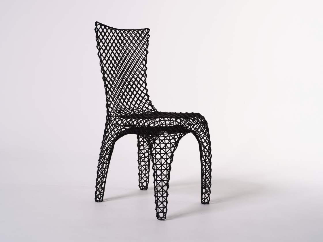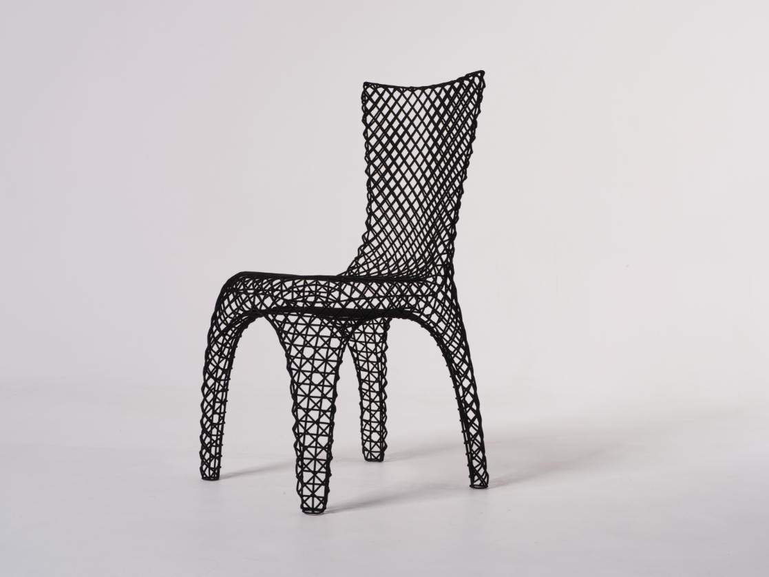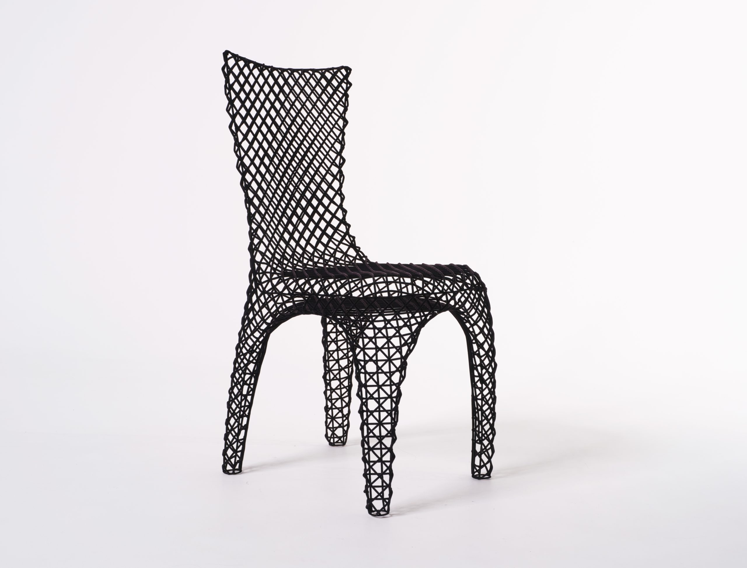 A monocoque chair inspired by the feline feminine form – soft to the touch but inherently strong. Made from flocked steel mesh. 1 of 1