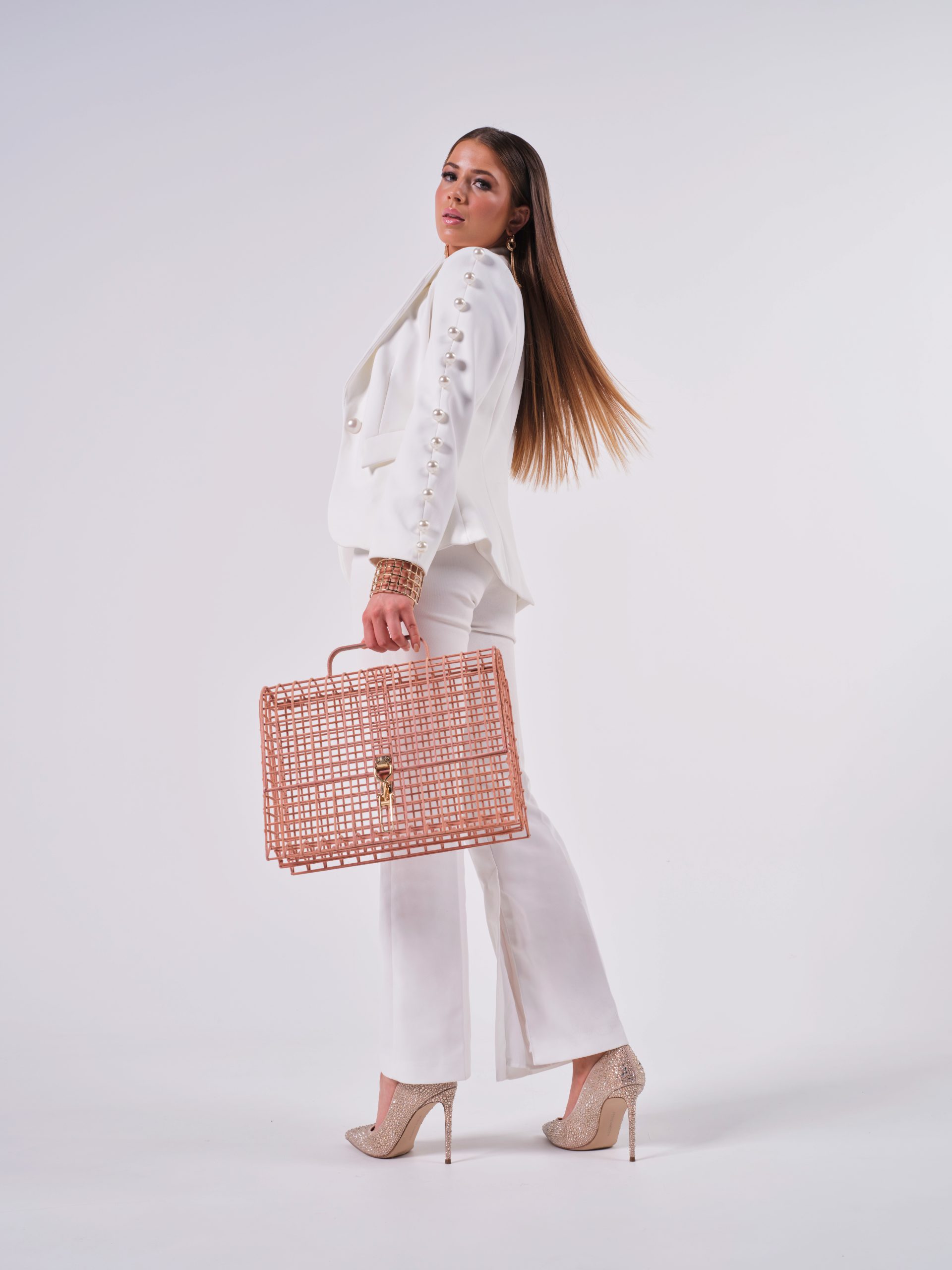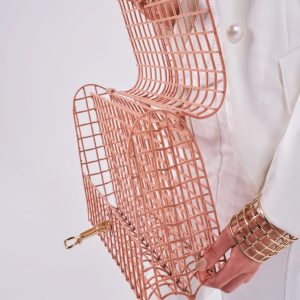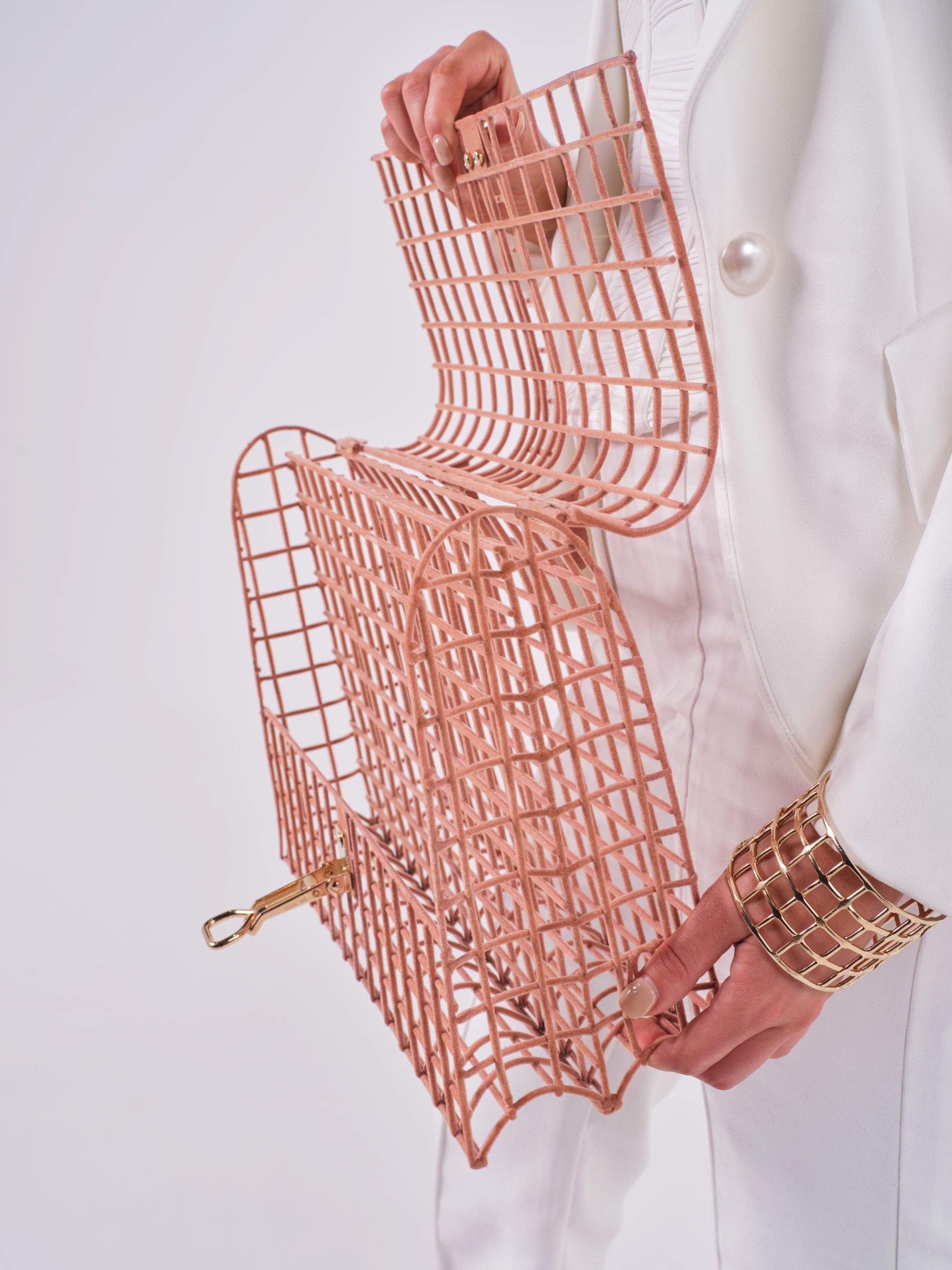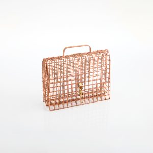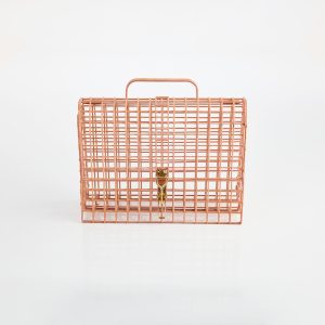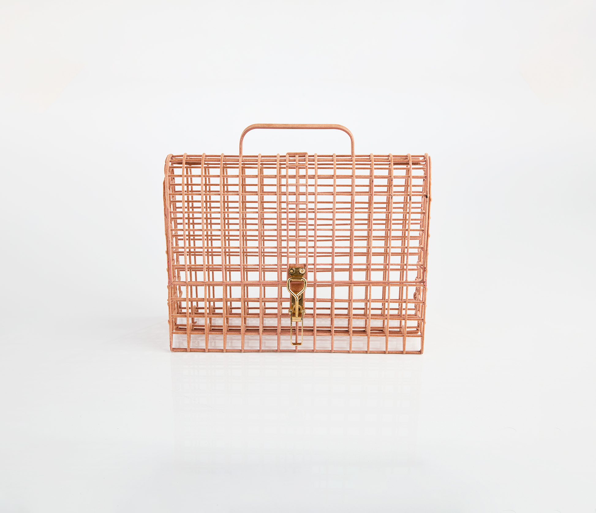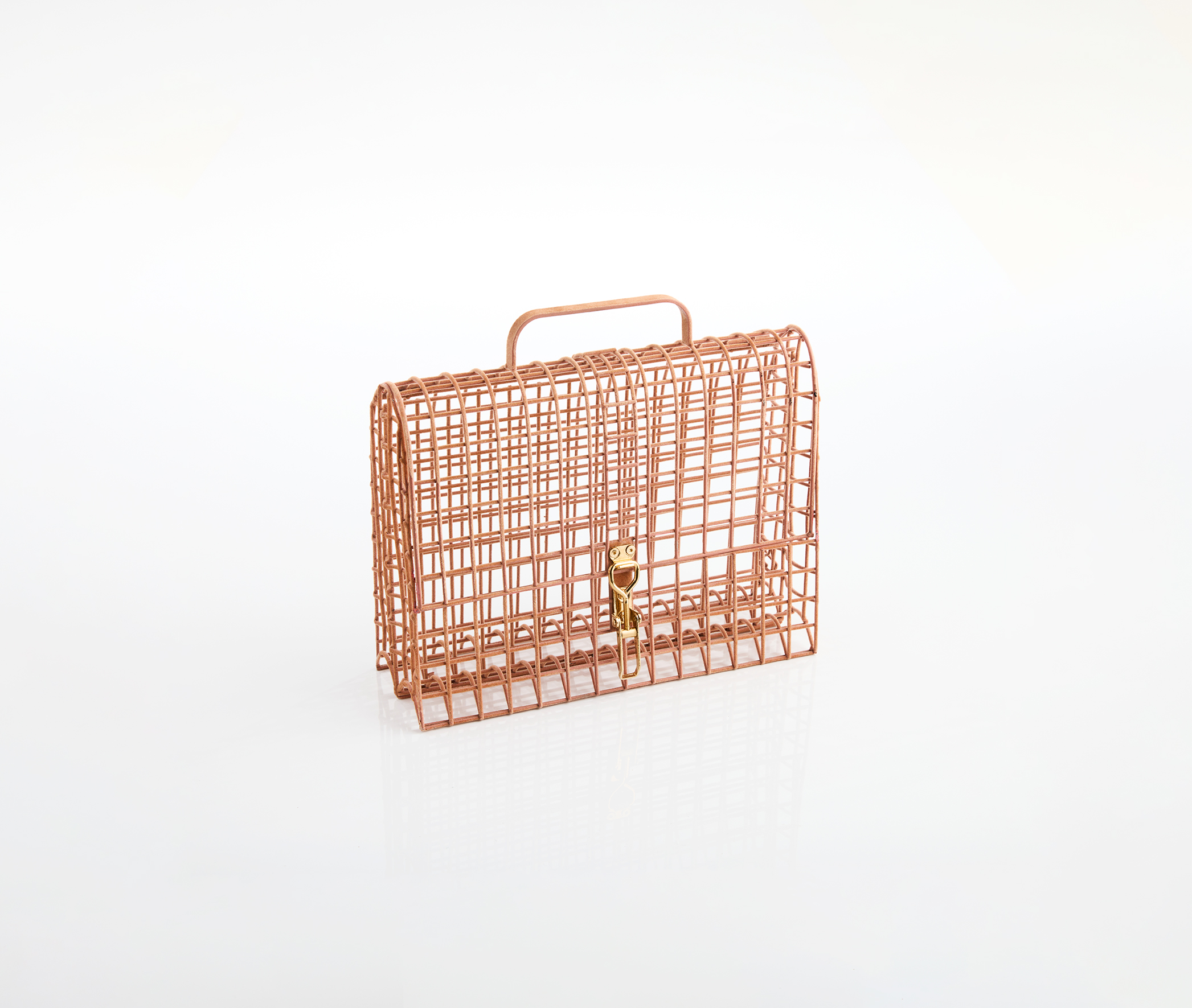 This piece pays homage to the boring, utilitarian “Gladstone” medical bag. Flocked brown to soften its overall feel, the gold-plated toggle latch and hinging pivot arms contrast, as they function to open and shut the satchel.